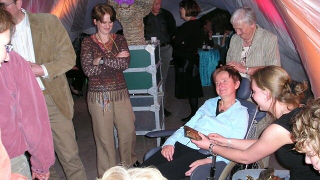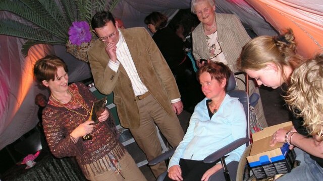 Het was geweldig. Een feest helemaal op mij gemaakt. Een gespreide binnenkomst van mensen. Een video gemaakt door familie en vrienden “Rondom Jeanet “, een liedje, een voordracht van mijn moeder en broer, een praatje van oud-collega’s, een ontroerende introductie van Hein, een Russisch lied van Jan, veel cadeautjes en heel veel karaoke. En dat laatste is iedereen honderd procent meegevallen. Je zingt namelijk niet alleen, maar de zaal brult alle nummers mee. ’s Nachts nog alles bekeken en pas om half vier naar bed gegaan. Het was een onvergetelijk feest. Bedankt allemaal.